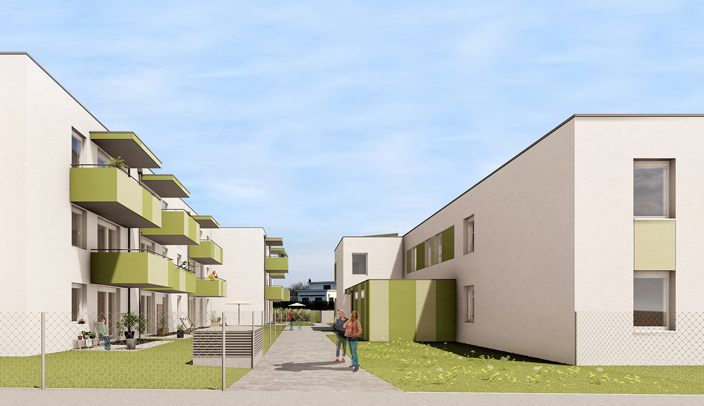 Die NBG errichtet mit Mittel der NÖ Wohnbauförderung auf dem Grundstück in 2482 Münchendorf, Hermann Hlinka Gasse 20, eine Wohnhausanlage mit 25 Wohnungen, in Miete mit Kaufoption.