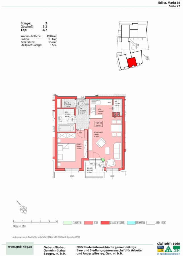 Monatl. Kosten inkl. 1 PKW-Einstellplatz in der Garage und BK, exkl Energiekosten: € derzeit 499,40