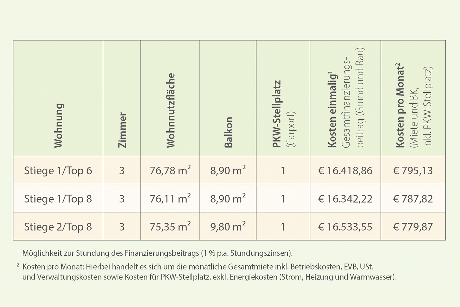 Die verfügbaren Wohneinheiten im Detail